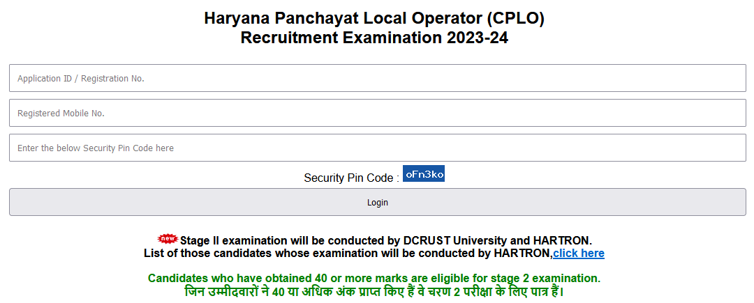 Haryana Panchayat Local Operator (CPLO) Admit Card 2024