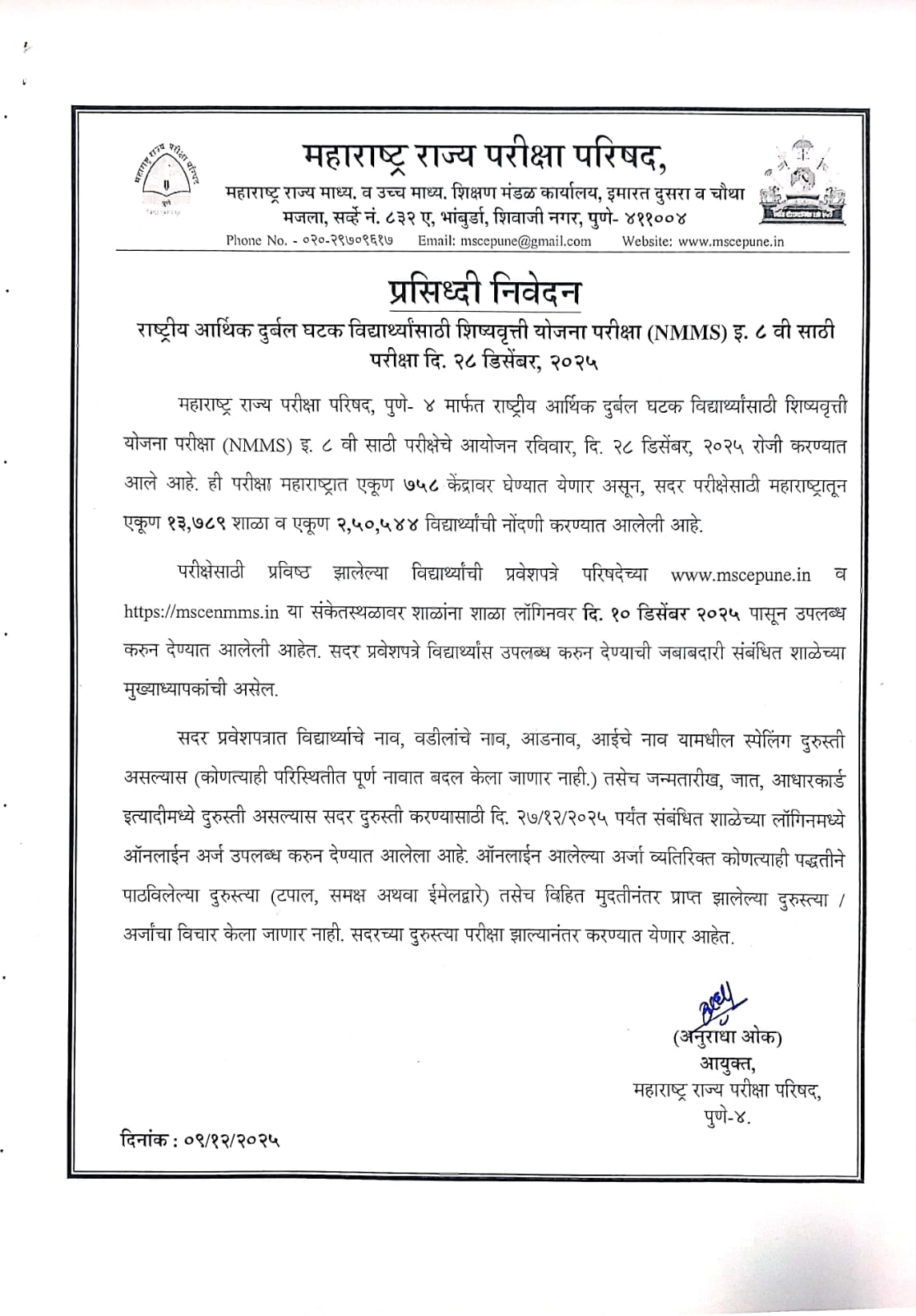 The scholarship examination was conducted on Sunday, December 28, 2025 across 758 centers in Maharashtra. A total of 13,789 schools and 2,50,544 students are registered for the exam.