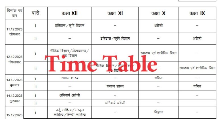 11 दिसंबर 2023 से लेकर 23 दिसंबर 2023 तक परीक्षा का आयोजन करवाया जायगा। परीक्षा का समापन होने के बाद शीतकालीन अवकाश दिया जा सकता है|